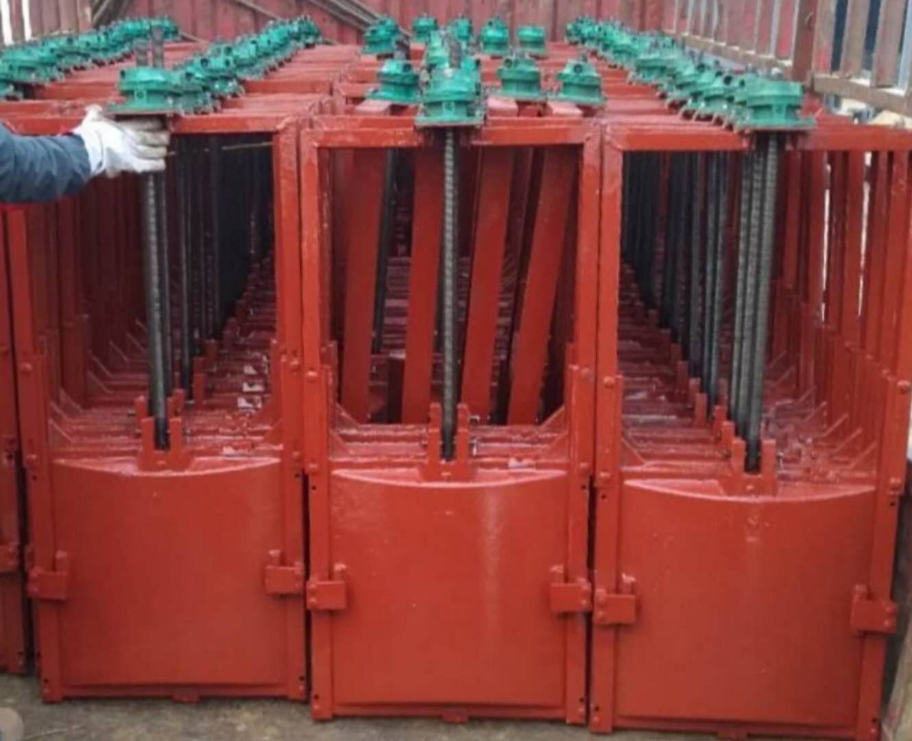 高標(biāo)準(zhǔn)農(nóng)田整治水利設(shè)備第六批閘門啟閉機(jī)批量到貨了,這次到貨的有機(jī)閘一體閘門和配套閘門啟閉機(jī),閘門啟閉機(jī)閘門主要用于給排水、防汛、灌溉、水利、水電工程中,用來(lái)截止、疏通水流或起調(diào)節(jié)水位的作用。它采用獨(dú)特的外弧形設(shè)計(jì),結(jié)構(gòu)合理、受力均勻,采用優(yōu)質(zhì)灰口鑄鐵或球墨鑄鐵,并經(jīng)精密加工后配研,達(dá)到平面接觸密封,密封性能好,當(dāng)密封止水性能下降時(shí),可通過(guò)楔塊裝置的調(diào)整加以解決。閘門為工作部分,啟閉機(jī)為閘門開啟與關(guān)閉的執(zhí)行部分,啟閉機(jī)由人力、電機(jī)或氣動(dòng)、液壓機(jī)構(gòu)帶動(dòng)傳動(dòng)裝置的齒輪、蝸輪蝸桿等運(yùn)轉(zhuǎn),驅(qū)動(dòng)傳動(dòng)螺母或螺桿轉(zhuǎn)動(dòng)使閘軸作垂直升降運(yùn)動(dòng),從而開啟或關(guān)閉閘門,達(dá)到放水、關(guān)水或調(diào)節(jié)水位的目的。