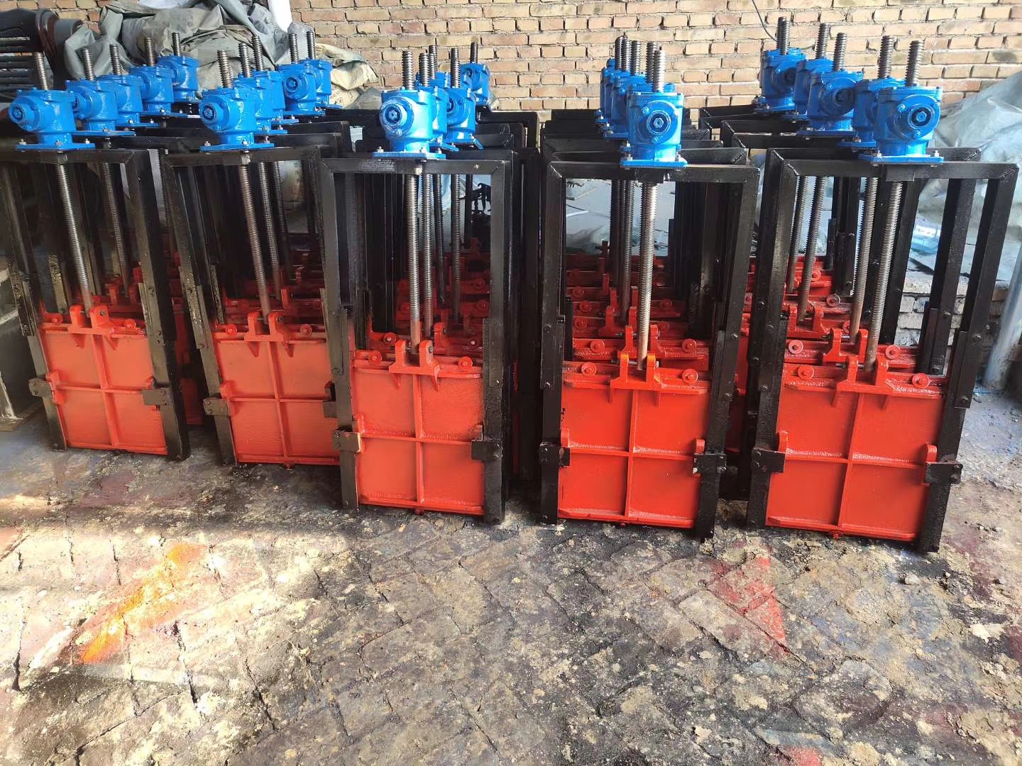 10.閘門安裝用整體安裝,二期澆注,將閘板與閘框的封水間隙調到0.3mm以下,方可進行二期澆注。