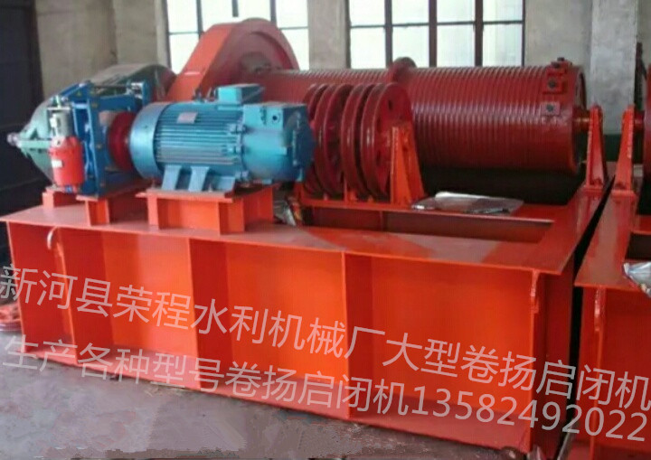 攔河閘用的卷揚(yáng)式啟閉機(jī)用于攔河閘的啟閉,用于行水放水。卷揚(yáng)式啟閉機(jī)是一種自動關(guān)閉的機(jī)械,是屬于一種新型的水利工程專用機(jī)械工具。它是用鋼索或鋼索滑輪組作吊具與閘門相連接,通過齒輪傳動系統(tǒng)使卷揚(yáng)筒繞、放鋼索從而帶動升降的機(jī)械,也叫做鋼絲繩固定式卷揚(yáng)機(jī),構(gòu)造較簡單易于制造,維護(hù)檢修方便,廣泛應(yīng)用于各種類型閘門的啟閉。